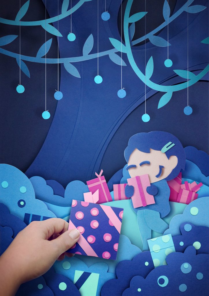 Illustration en papier découpé réalisé pour le département Loire Atlantique dans le cadre de sa collecte solidaire de jouets de noël.
