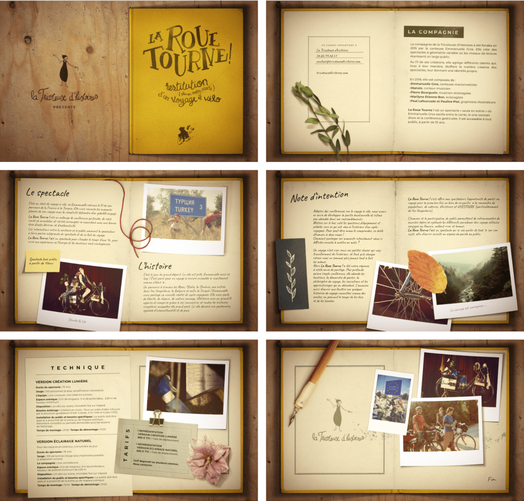Affiches de théâtre et dossier de présentation pour des spectacles drôles et poétiques.