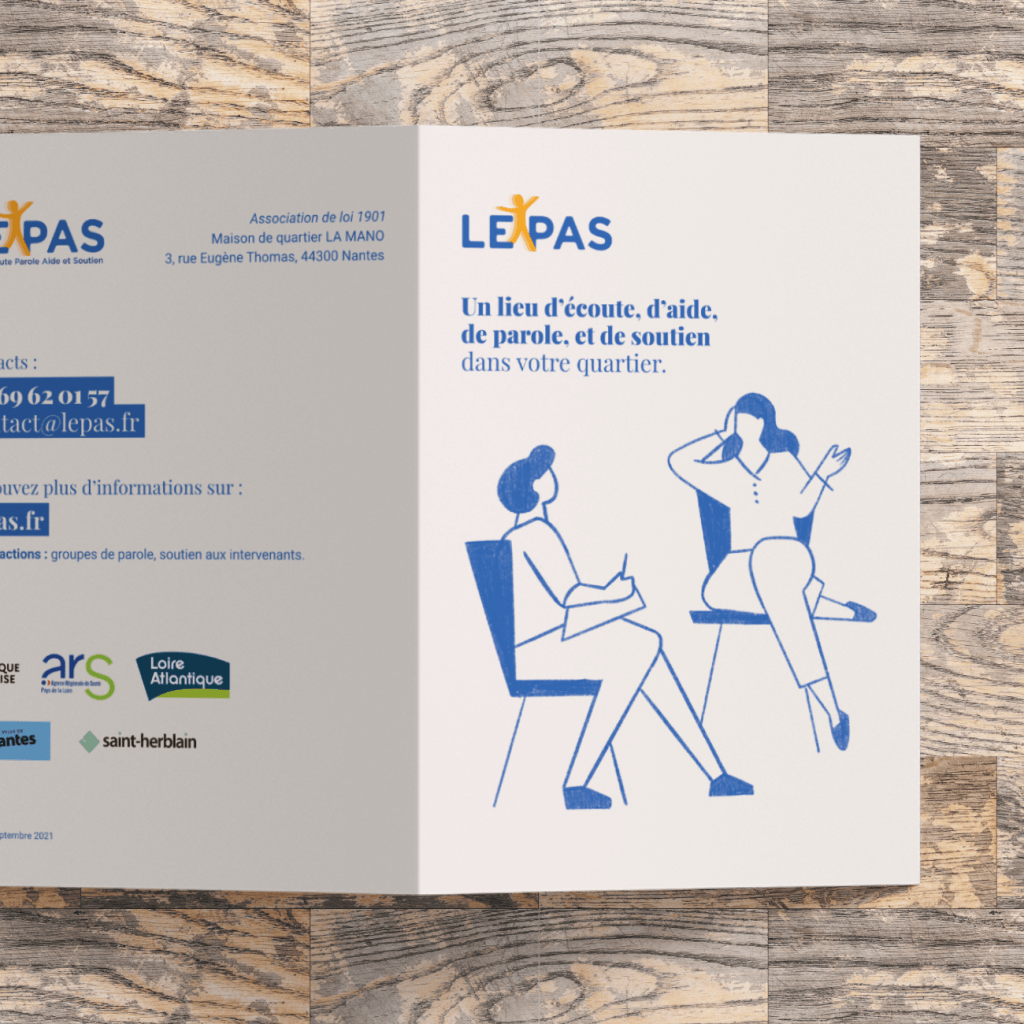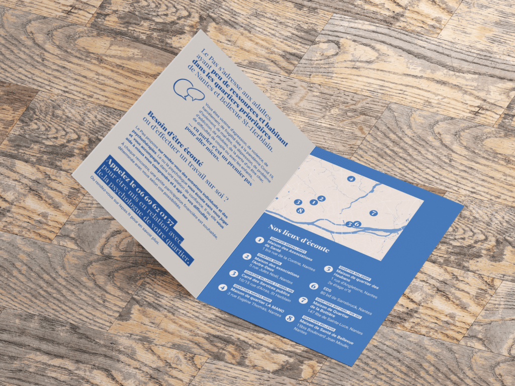 Flyer pour informer et aiguiller les personnes résidants dans les quartiers prioritaires nantais vers les psychologues de l’association.