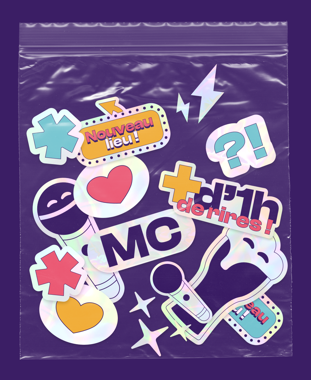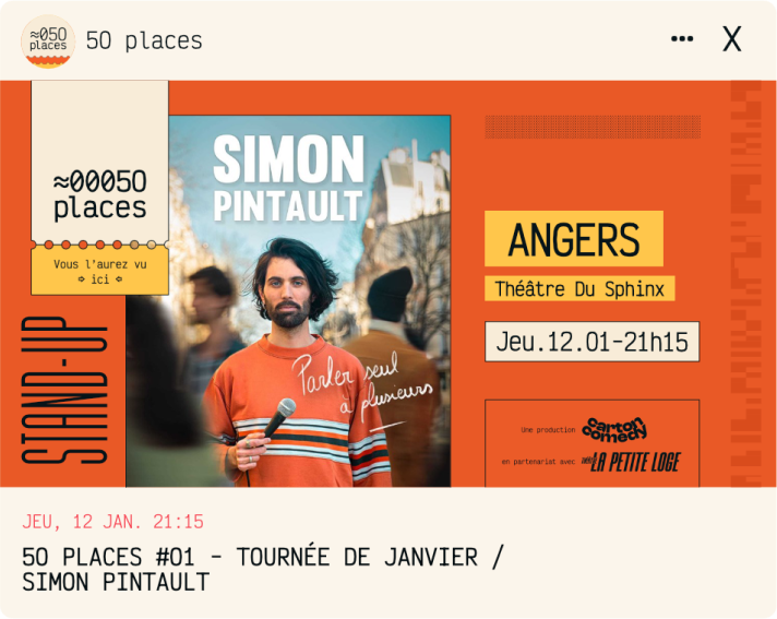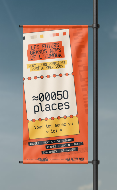 Identité et gabarits pour un festival itinérant de stand-up.